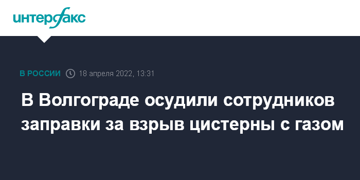 Москва. 18 апреля. INTERFAX.RU - Тракторозаводский районный суд Волгограда вынес обвинительный приговор двум бывшим сотрудникам заправки по делу о возгорании на АГЗС. В результате пожара пострадали 13 человек, один из которых впоследствии скончался.