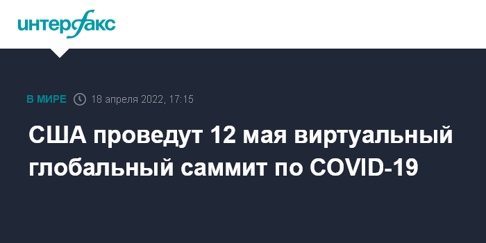 Москва. 18 апреля. INTERFAX.RU - Второй глобальный саммит по коронавирусу COVID-19 пройдет 12 мая в онлайн-формате, организацией встречи занимаются США, Белиз, Германия, Индонезия и Сенегал, говорится в заявлении, распространенном в понедельник Белым домом.
