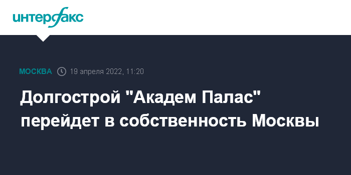 Долгострой "Академ Палас" перейдет в собственность Москвы
