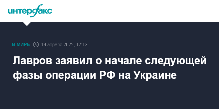 Москва. 19 апреля. INTERFAX.RU - Россия начинает следующую фазу специальной операции на Украине, заявил глава МИД РФ Сергей Лавров.