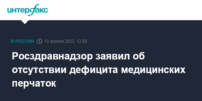 Москва. 19 апреля. INTERFAX.RU - В России отсутствует дефицит медицинских перчаток, их запасов у производителей и поставщиков достаточно, сообщили в пресс-службе Росздравнадзора.