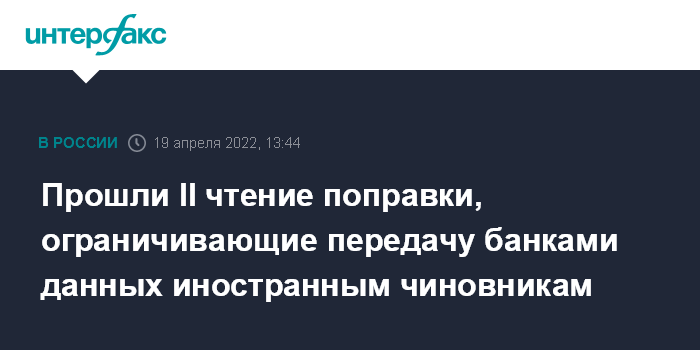 Прошли II чтение поправки, ограничивающие передачу банками данных иностранным чиновникам