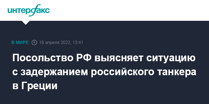 Москва. 19 апреля. INTERFAX.RU - Посольство РФ в Афинах находится в контакте с греческими властями в связи с информацией о задержании российского нефтяного танкера в греческих водах, сообщили в российской дипмиссии.