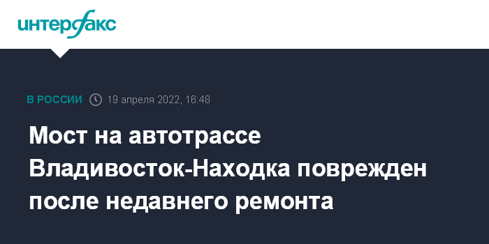 Мост на автотрассе Владивосток-Находка поврежден после недавнего ремонта