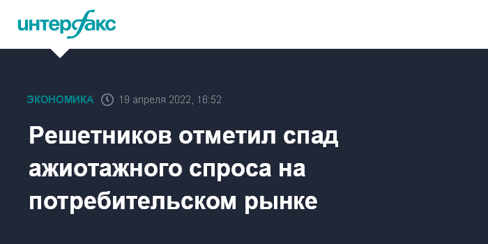 Москва. 19 апреля. INTERFAX.RU - Ажиотажный спрос ушел с потребительского рынка в России, оборот розничной торговли сейчас чуть ниже докризисного, запасы большинства товаров восстановились, заявил глава Минэкономразвития Максим Решетников на заседании правительственной комиссии по повышению устойчивости российской экономики.