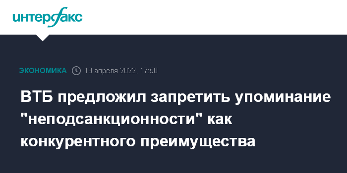 ВТБ предложил запретить упоминание "неподсанкционности" как конкурентного преимущества