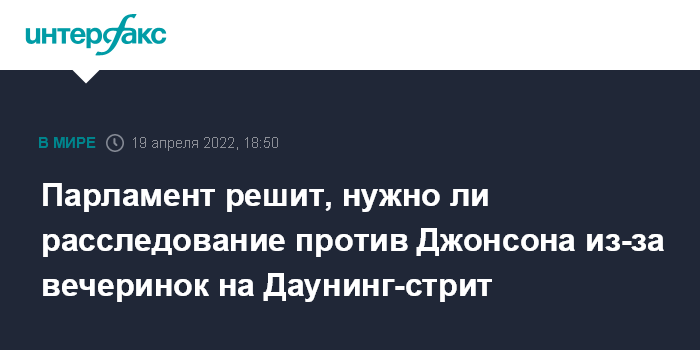 Москва. 19 апреля. INTERFAX.RU - В Палате общин на этой неделе проведут голосование по вопросу о проведении расследования в отношении премьера Великобритании Борис Джонсона и его заявлений по вопросу вызвавших политический скандал вечеринок на Даунинг-стрит, сообщает во вторник Sky News.