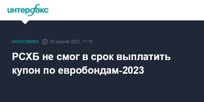 В связи с введенными 24 марта Управлением по осуществлению финансовых санкций Великобритании (OFSI) санкциями против РСХБ, платежный агент на данный момент не подтвердил готовность принять от банка платеж и осуществить выплату процентов депозитариям Euroclear / Clearstream / DTC, и далее держателям еврооблигаций до получения дальнейших указаний от регулирующих органов Великобритании, говорится в сообщении.