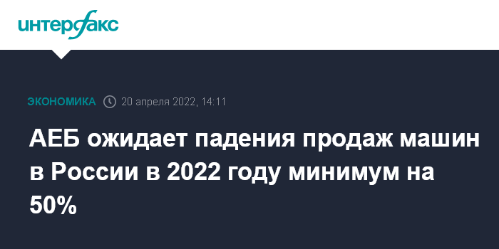 Москва. 20 апреля. INTERFAX.RU - В России в 2022 году продажи новых легковых машин могут сократиться минимум на 50%, прогнозируют в Ассоциации европейского бизнеса. Об этом на конвенции Ассоциации российских автомобильных дилеров сказал председатель комитета автопроизводителей АЕБ Алексей Калицев.