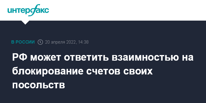 РФ может ответить взаимностью на блокирование счетов своих посольств