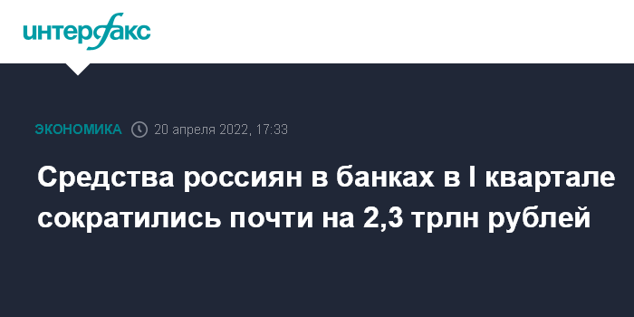 Средства россиян в банках в I квартале сократились почти на 2,3 трлн рублей