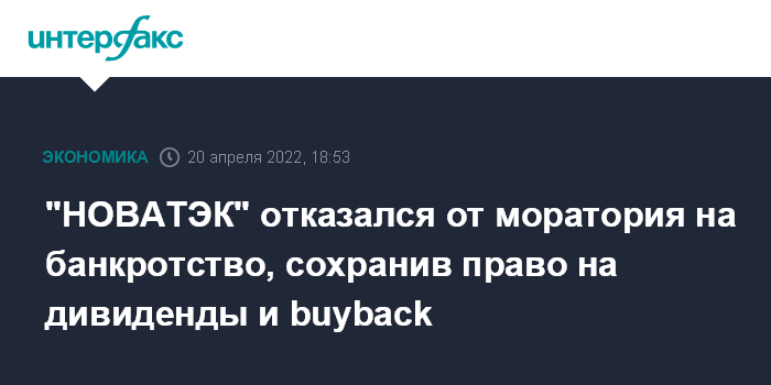 "НОВАТЭК" отказался от моратория на банкротство, сохранив право на дивиденды и buyback