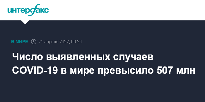 Число выявленных случаев COVID-19 в мире превысило 507 млн