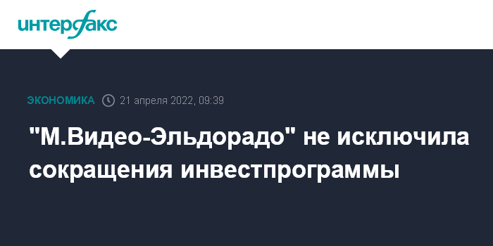 Москва. 21 апреля. INTERFAX.RU - Группа "М.Видео-Эльдорадо", один из лидеров российского рынка бытовой техники и электроники, планирует оптимизировать расходы на аренду, в том числе за счет закрытия неэффективных магазинов, и не исключает сокращения инвестиционной программы.