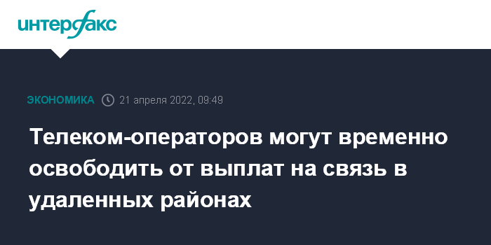Телеком-операторов могут временно освободить от выплат на связь в удаленных районах