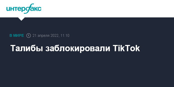 Москва. 21 апреля. INTERFAX.RU - Кабинет министров контролирующего Афганистан движения "Талибан" (запрещенная в России террористическая организация) принял решение заблокировать соцсеть TikTok как "аморальное приложение", сообщает в четверг заместитель официального представителя движения Инамулла Самангани.
