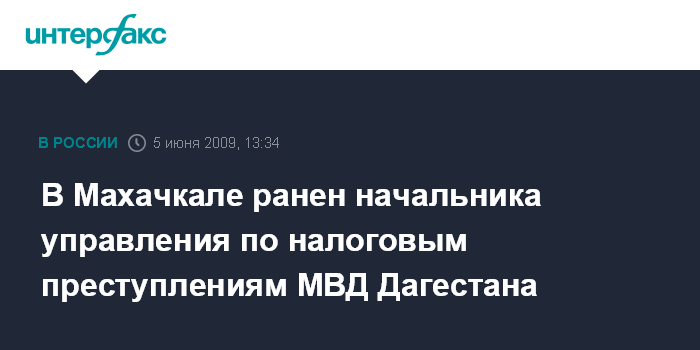 Москва. 5 июня. INTERFAX.RU - Начальник УНП МВД Дагестана полковник Абдуллджаппар Магомедов в пятницу днем был ранен в Махачкале, сообщили "Интерфаксу" в пресс-службе УВД города. По данным пресс-службы, преступление было совершено в 13:05 на улице Амет-Хана Султана.
