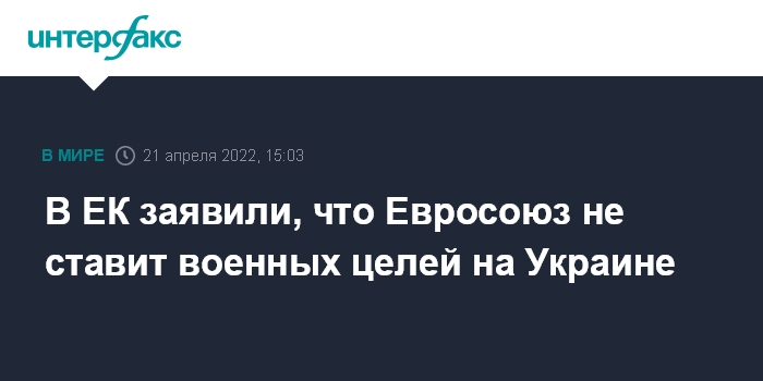 Москва. 21 апреля. INTERFAX.RU - ЕС не ведет войны ни с кем и стремится помочь Украине защитить свой суверенитет, заявил официальный представитель Еврокомиссии (ЕК) Эрик Мамер.