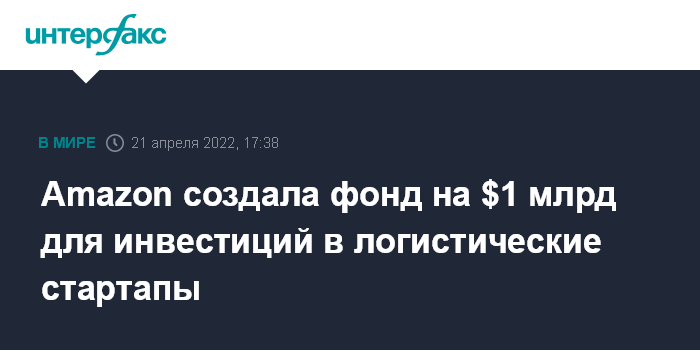 Москва. 21 апреля. INTERFAX.RU - Американский интернет-ритейлер Amazon.com Inc создал венчурный фонд объемом $1 млрд для инвестиций в стартапы в сфере логистики, фулфилмента и технологий для цепочек поставок.
