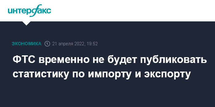 "ФТС (сейчас - ИФ) не публикует статистику по импорту и экспорту. Я поддерживаю это решение, считаю его оправданным во избежание некорректных оценок, спекуляций и разночтений в части импортных поставок. Это временная мера", - заявил он.