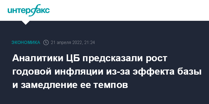 Москва. 21 апреля. INTERFAX.RU - Годовая инфляция в России продолжит увеличиваться из-за эффекта базы, но меньшими темпами, чем в марте, считают аналитики Банка России.