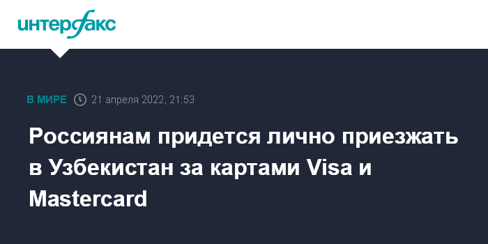 Ранее сообщалось, что ряд туристических фирм России в апреле запускают туры в Узбекистан, целью которых является оформление российскими гражданами банковских карт платежных систем Visa и Mastercard.