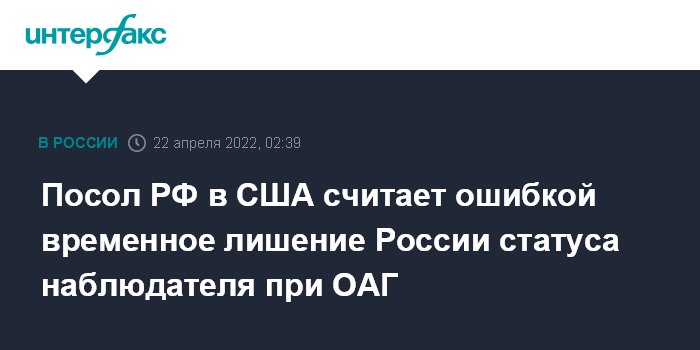 Посол РФ в США считает ошибкой временное лишение России статуса наблюдателя при ОАГ