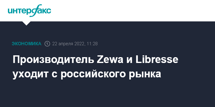 Москва. 22 апреля. INTERFAX.RU - Шведская Essity, выпускающая товары для здоровья и гигиены под брендами Libresse, Libero, Lotus, Zewa и др., приняла решение уйти с российского рынка.