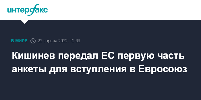Молдавия получила анкету Европейской комиссии 11 апреля. Она включает 369 вопросов. Молдавия подала заявление о членстве в Евросоюз 3 марта, вслед за Украиной и Грузией.