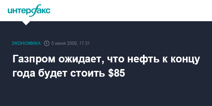 Газпром ожидает, что нефть к концу года будет стоить $85