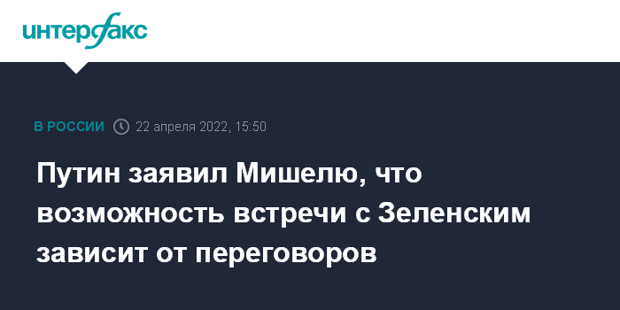 Путин заявил Мишелю, что возможность встречи с Зеленским зависит от переговоров