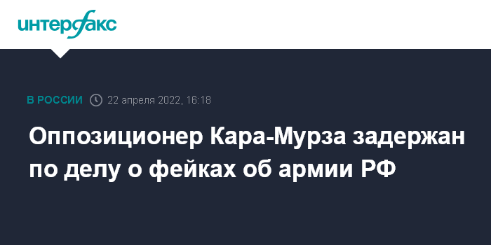 Оппозиционер Кара-Мурза задержан по делу о фейках об армии РФ
