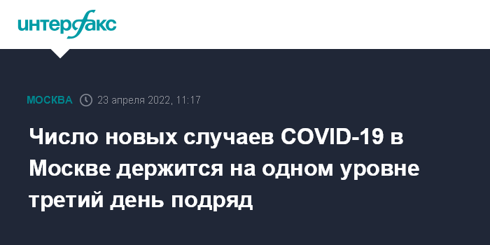 Число новых случаев COVID-19 в Москве держится на одном уровне третий день подряд