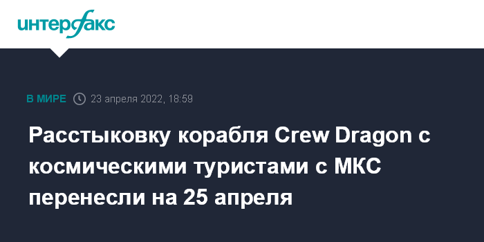 Расстыковку корабля Crew Dragon с космическими туристами с МКС перенесли на 25 апреля