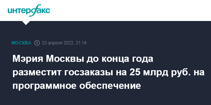 Мэрия Москвы до конца года разместит госзаказы на 25 млрд руб. на программное обеспечение