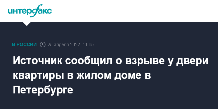 Источник сообщил о взрыве у двери квартиры в жилом доме в Петербурге