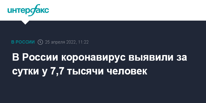 Москва. 25 апреля. INTERFAX.RU - Суточный прирост новых заболевших коронавирусной инфекцией в РФ составил 7 651 случай, госпитализированы 1 112 человек, следует из данных оперативного штаба, обнародованных в понедельник.