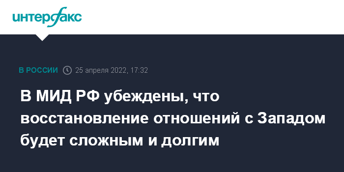 В МИД РФ убеждены, что восстановление отношений с Западом будет сложным и долгим