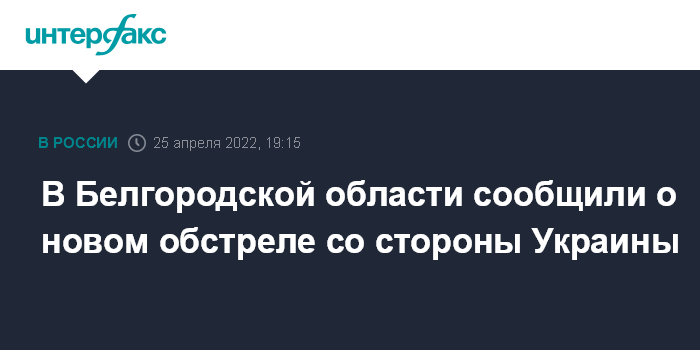 Накануне, 24 апреля, глава Белгородского района Белгородской области Владимир Перцев сообщил о попадании снаряда с территории Украины в село Отрадное.