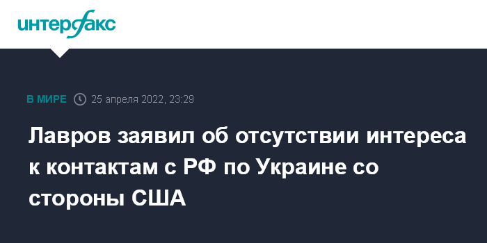 Москва. 25 апреля. INTERFAX.RU - Контакты России и США по Украине были бы полезными, однако интереса к ним Вашингтон не проявляет, заявил глава МИД РФ Сергей Лавров в интервью программе "Большая игра" на Первом канале.