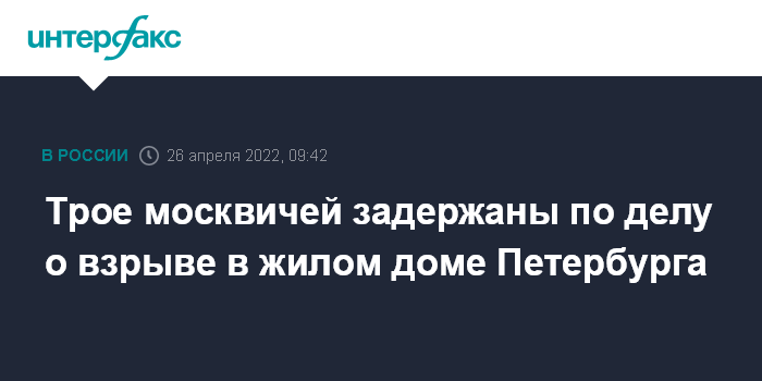 Трое москвичей задержаны по делу о взрыве в жилом доме Петербурга