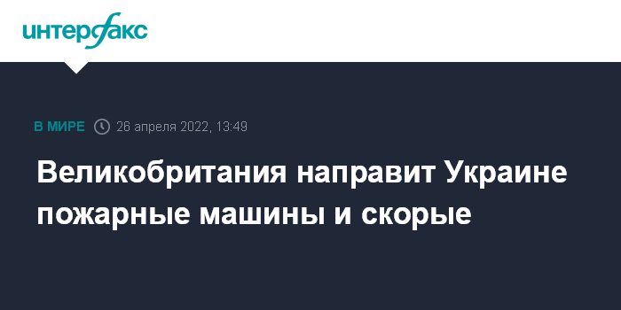 "Премьер Великобритании объявил 26 апреля, что новые машины "скорой помощи", пожарные машины, финансовые средства для экспертов в сфере здравоохранения и медикаменты для оказания экстренной помощи будут пожертвованы Украине в рамках твердой поддержки Великобритании Украины", - говорится в заявлении на сайте правительства страны.