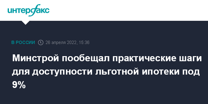 Москва. 26 апреля. INTERFAX.RU - Меры для доступности льготной программы ипотеки с господдержкой со ставкой 9% будут приняты в ближайшее время, заявил журналистам глава Минстроя России Ирек Файзуллин.