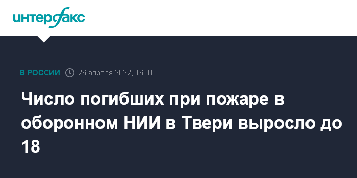 Число погибших при пожаре в оборонном НИИ в Твери выросло до 18