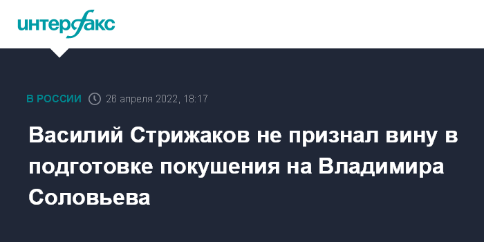 Василий Стрижаков не признал вину в подготовке покушения на Владимира Соловьева