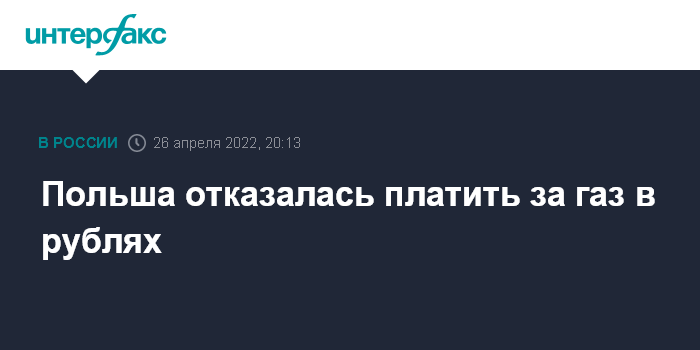 Москва. 26 апреля. INTERFAX.RU - Польская газовая госкомпания PGNiG отказалась оплачивать поставки российского газа в соответствии с новым порядком - с обязательной конвертацией в рубли, говорится в её заявлении.