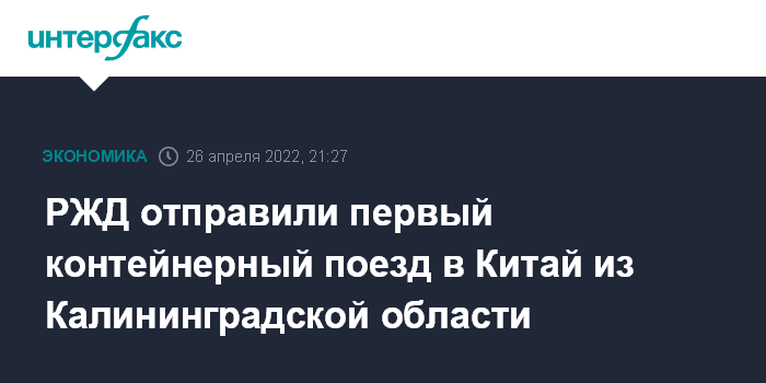 Москва. 26 апреля. INTERFAX.RU - Калининградская железная дорога (КЖД, филиал РЖД) приступила к реализации нового транспортно-логистического проекта по отправке контейнерных поездов со станции Черняховск (Калининградская область) в Китай на станцию Чэнсян (провинция Фуцзянь), сообщила пресс-служба филиала.