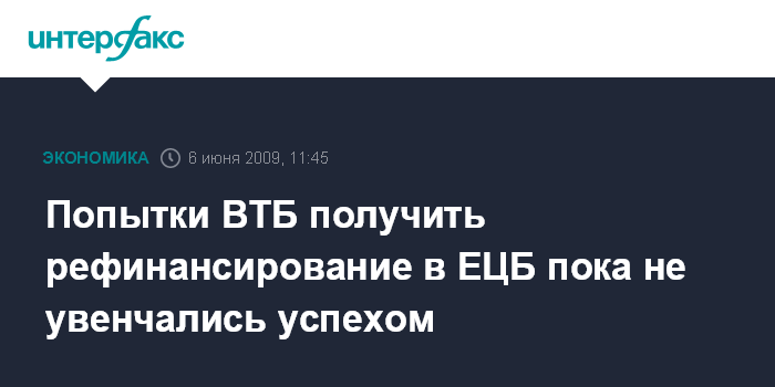 Попытки ВТБ получить рефинансирование в ЕЦБ пока не увенчались успехом