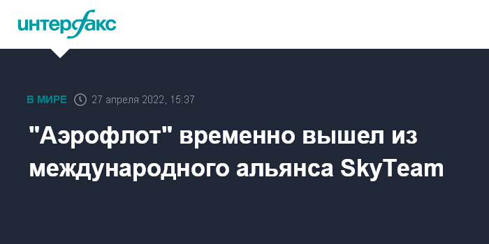 Москва. 27 апреля. INTERFAX.RU - "Аэрофлот" временно вышел из международного авиационного альянса SkyTeam.