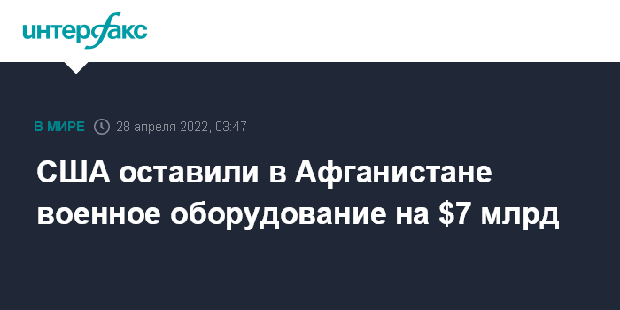 Из этой суммы оборудование на сумму $7,12 млрд осталось в Афганистане после завершения вывода войск США 30 августа 2021 года.